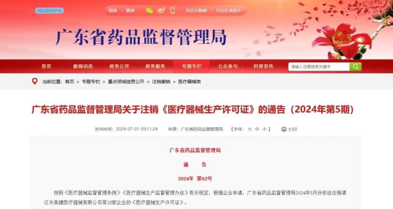 7月1日,廣東藥監(jiān)局發(fā)布通告稱,根據(jù)企業(yè)申請(qǐng),該局于2024年5月依法注銷深圳市三諾電子有限公司、艾諾克醫(yī)美科技(珠海)有限公司、深圳市紐泰克電子有限公司等18家企業(yè)的《醫(yī)療器械生產(chǎn)許可證》。具體清單如下: