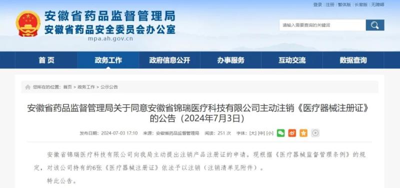 近日,安徽省藥監(jiān)局發(fā)布公告稱,安徽省錦瑞醫(yī)療科技有限公司向該局主動(dòng)提出注銷產(chǎn)品注冊證的申請。根據(jù)《醫(yī)療器械監(jiān)督管理?xiàng)l例》的規(guī)定,對該公司持有的6張《醫(yī)療器械注冊證》依法予以注銷。我們通過查看附件發(fā)現(xiàn),此次注銷的產(chǎn)品均為醫(yī)用口罩,具體明細(xì)如下:
