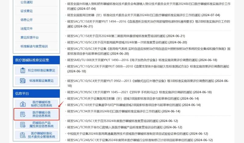 第三步,在頁(yè)面左下角“信息平臺(tái)”中進(jìn)入“醫(yī)療器械分類(lèi)界定信息系統(tǒng)”;