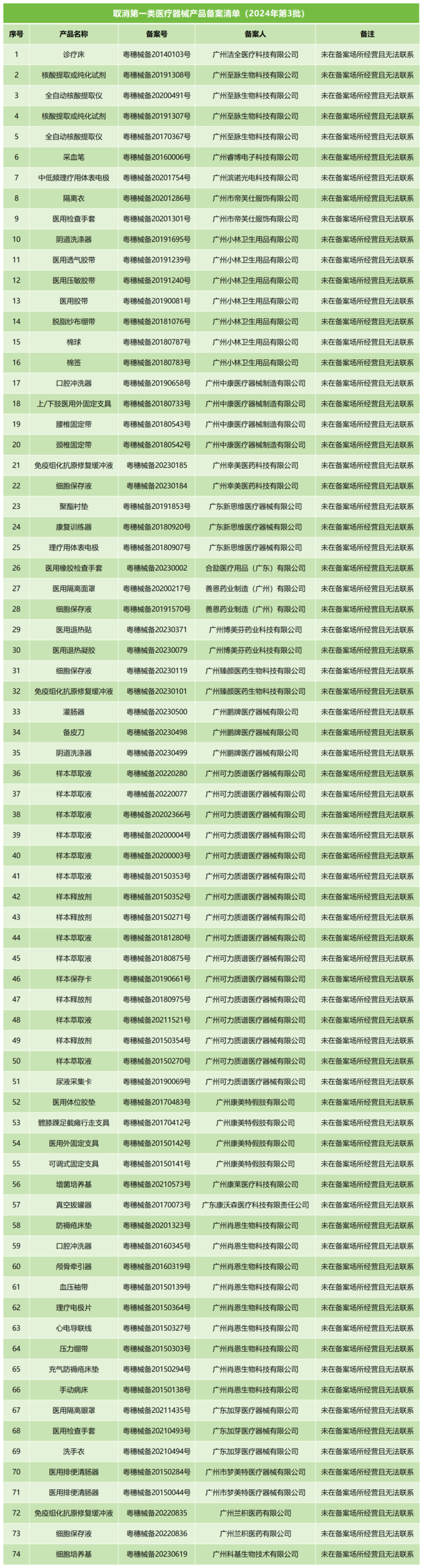 廣州市場(chǎng)監(jiān)管局:以下74個(gè)第一類醫(yī)械產(chǎn)品備案已被取消!