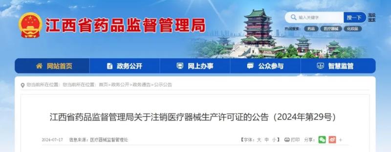 注銷公告 醫(yī)療器械生產(chǎn)許可證 省市局動(dòng)態(tài)