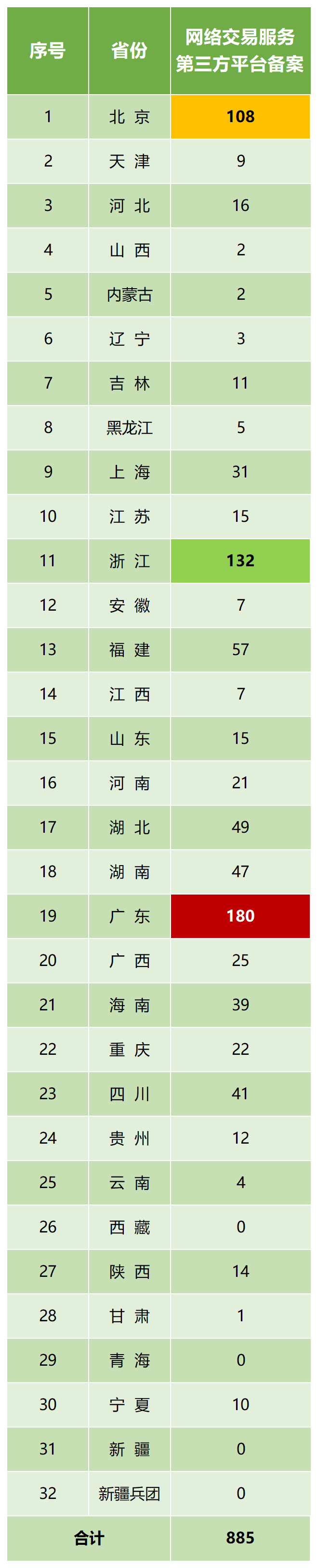 據(jù)國家藥監(jiān)局統(tǒng)計,截至2024年6月30日,我國各省醫(yī)療器械醫(yī)療器械網(wǎng)絡交易服務第三方平臺數(shù)據(jù)如下:
