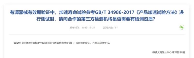 那么在有源器械有效期驗(yàn)證過(guò)程中,若委托第三方檢測(cè)機(jī)構(gòu)按照GB/T 34986-2017《產(chǎn)品加速試驗(yàn)方法》進(jìn)行加速老化試驗(yàn)時(shí),該檢測(cè)機(jī)構(gòu)是否需要有檢測(cè)資質(zhì)呢?