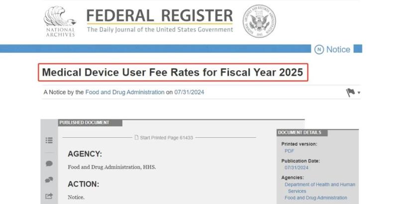 美國當(dāng)?shù)貢r間7月31日,美國聯(lián)邦公報(Federal Register)公布FDA 2025財政年度(2024年10月1日至2025年9月30日)醫(yī)療器械收費標(biāo)準(zhǔn)→又雙叒叕漲了!