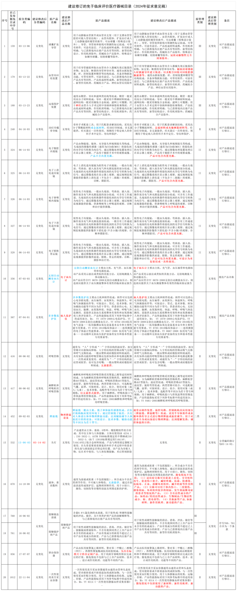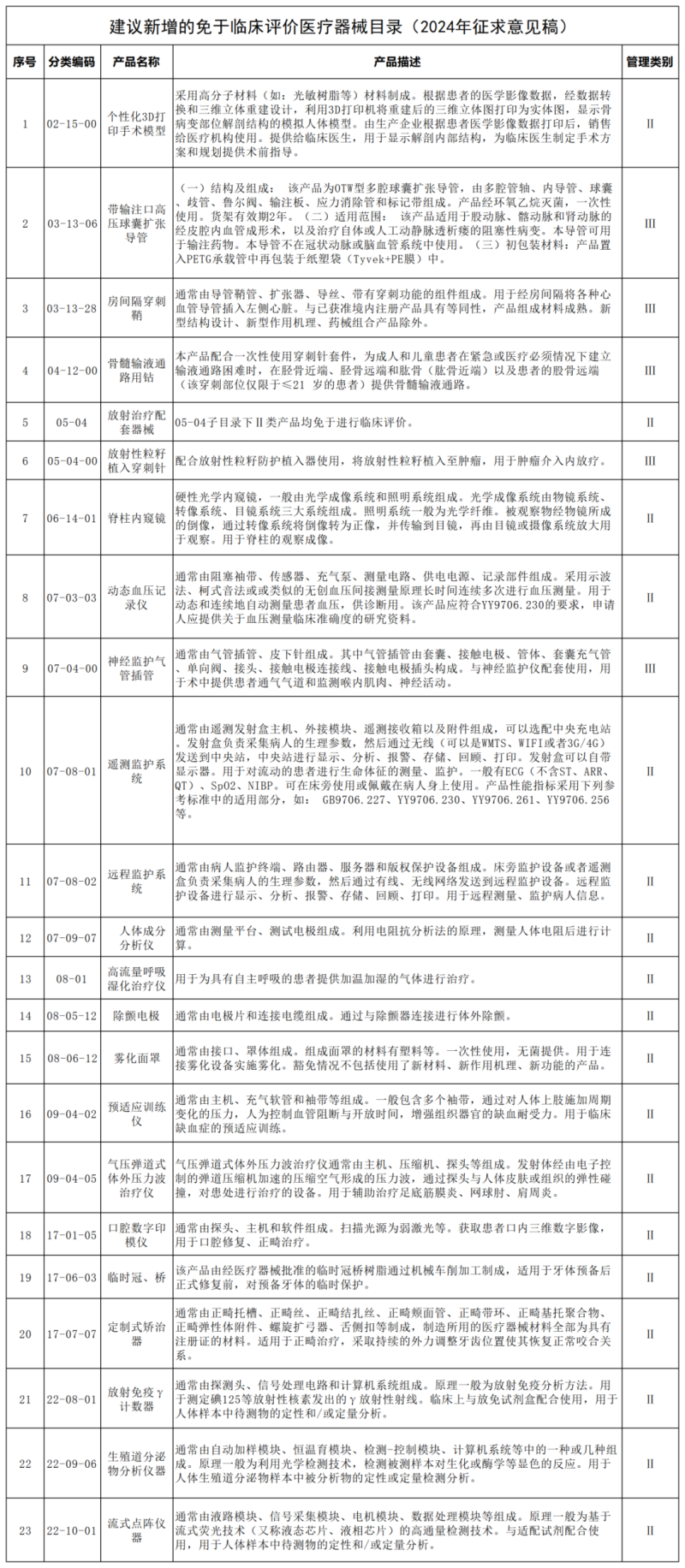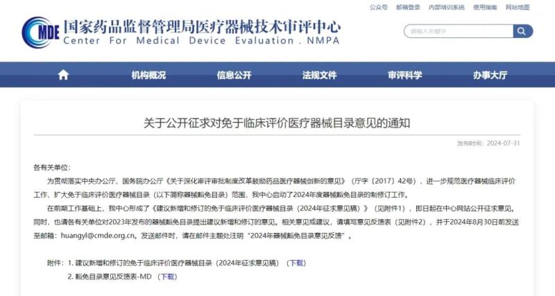7月31日,國家藥監(jiān)局器審中心發(fā)布《建議新增和修訂的免于臨床評價醫(yī)療器械目錄(2024年征求意見稿)》,并向社會公開征求意見。