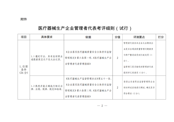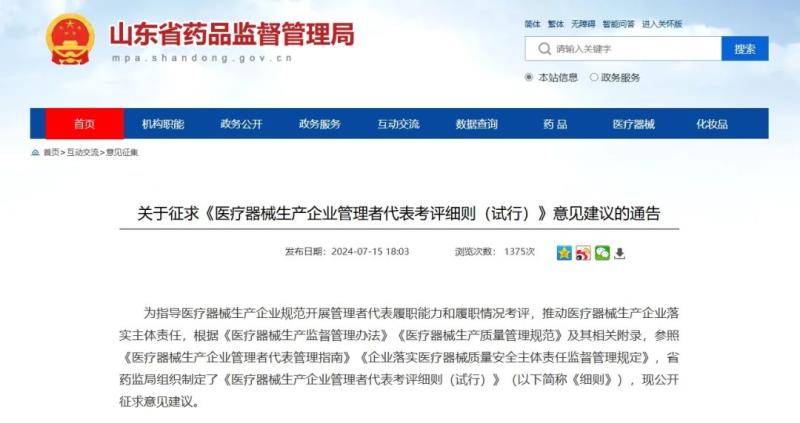 山東藥監(jiān)局擬明確醫(yī)械生產(chǎn)企業(yè)【管理者代表】考評細則