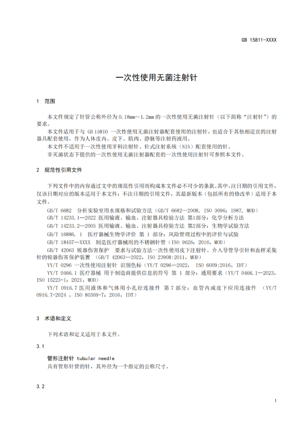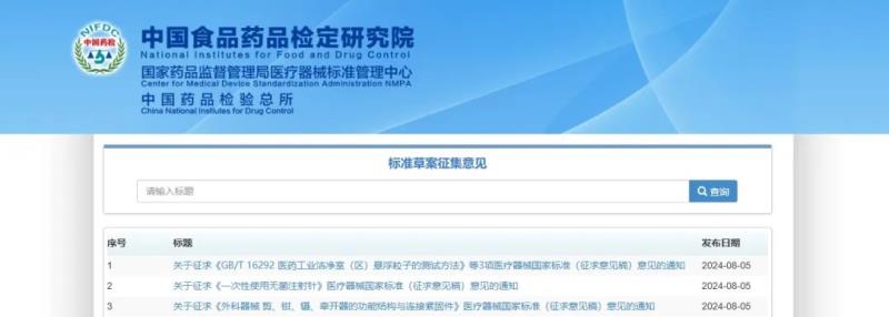 《一次性使用無菌注射針》等5項國家標(biāo)準(zhǔn)征求意見中