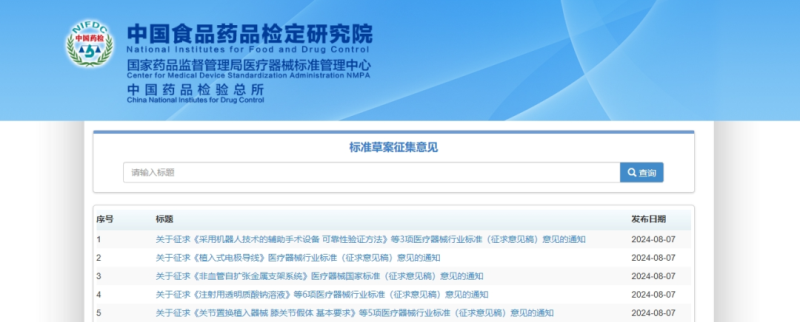 8月7日,國家藥監(jiān)局醫(yī)療器械標(biāo)準(zhǔn)管理中心發(fā)布幾則關(guān)于征求醫(yī)療器械行業(yè)標(biāo)準(zhǔn)意見的通知,通知顯示,近期共有16項標(biāo)準(zhǔn)形成了征求意見稿,具體明細(xì)如下: