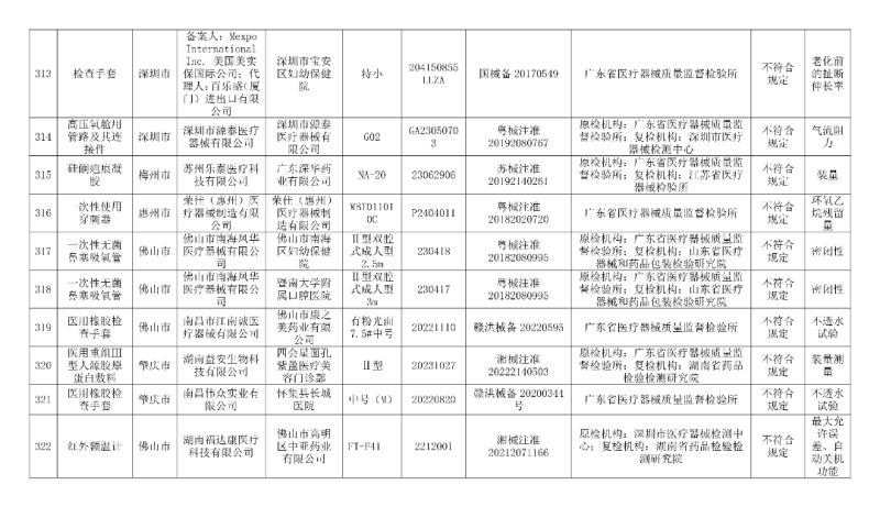 8月15日,廣東藥監(jiān)局發(fā)布《關于醫(yī)療器械抽查檢驗信息的通告(2024年第4期,總第89期)》,我們通過查看通告中的附件發(fā)現(xiàn),本次共抽查檢驗了322批次產(chǎn)品,其中有10批次不符合規(guī)定,包括醫(yī)用重組Ⅲ型人源膠原蛋白敷料、硅酮疤痕凝膠、一次性無菌鼻塞吸氧管、紅外額溫計等產(chǎn)品,不符合規(guī)定產(chǎn)品具體明細如下: