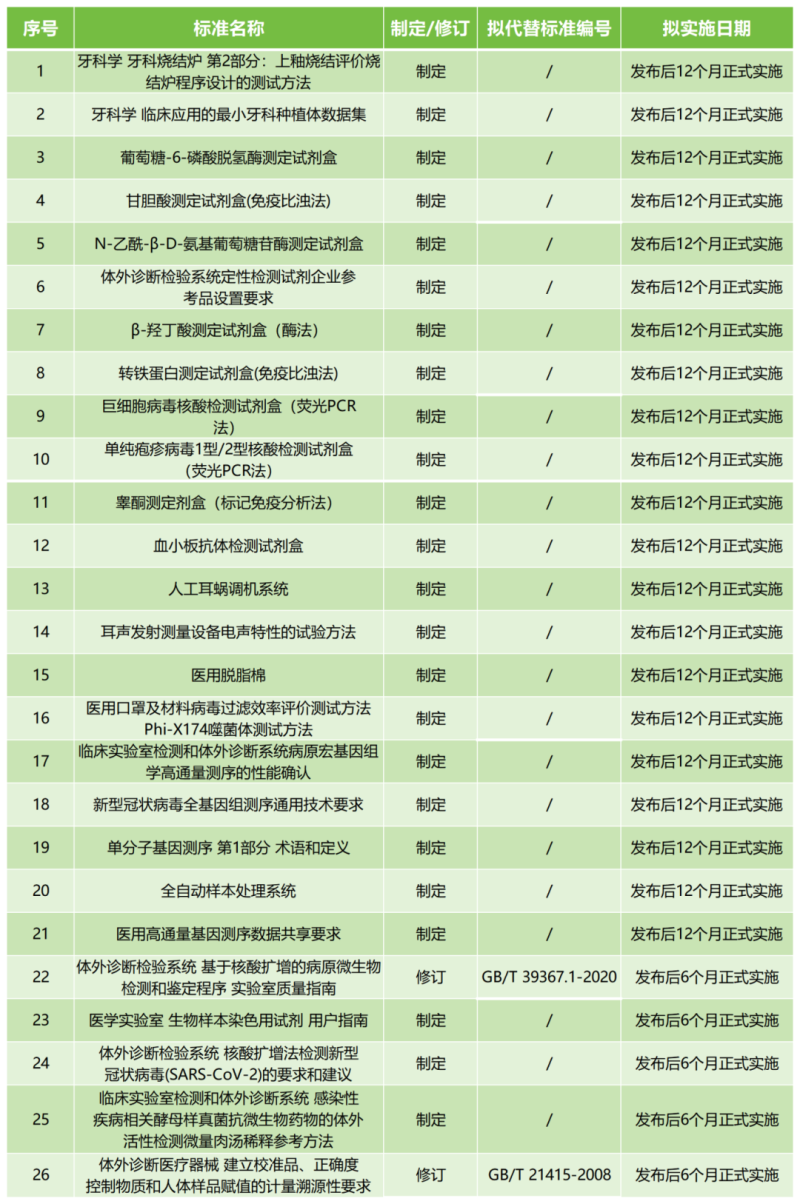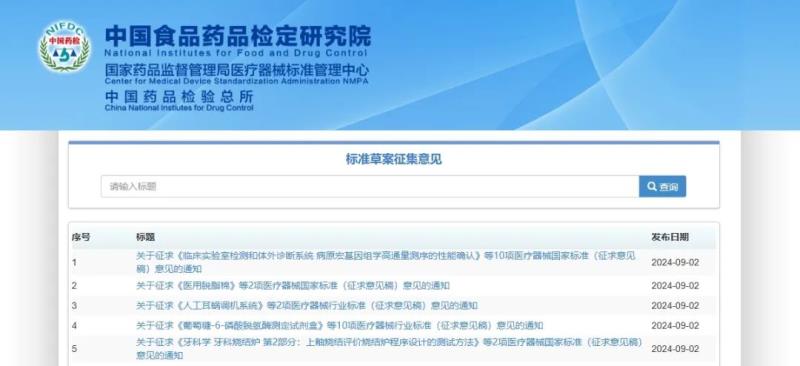 9月2日,國家藥監(jiān)局醫(yī)療器械標(biāo)準(zhǔn)管理中心發(fā)布幾則關(guān)于征求醫(yī)療器械行業(yè)標(biāo)準(zhǔn)意見的通知,通知顯示,近期共有26項(xiàng)標(biāo)準(zhǔn)形成了征求意見稿,具體明細(xì)如下: