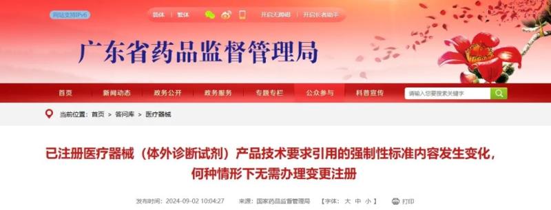 醫(yī)療器械(體外診斷試劑)注冊(cè)證有效期內(nèi)有新的強(qiáng)制性標(biāo)準(zhǔn)發(fā)布實(shí)施,已注冊(cè)產(chǎn)品的注冊(cè)證及其附件載明事項(xiàng)均不發(fā)生變化,即符合新的強(qiáng)制性標(biāo)準(zhǔn),具體包括以下兩種情形: