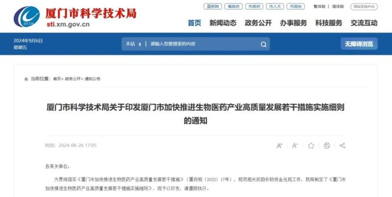 第一條 為貫徹落實(shí)《廈門(mén)市加快推進(jìn)生物醫(yī)藥產(chǎn)業(yè)高質(zhì)量發(fā)展若干措施》(廈府規(guī)〔2023〕17號(hào))(以下簡(jiǎn)稱(chēng)《若干措施》),結(jié)合本市實(shí)際,制定本實(shí)施細(xì)則。
