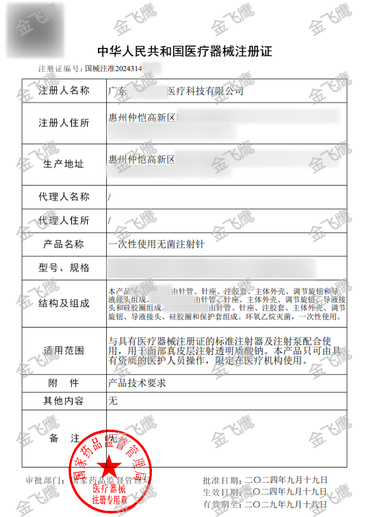 成功拿到了“一次性使用無(wú)菌注射針”的
