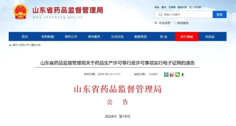 山東藥監(jiān)局:醫(yī)療器械生產(chǎn)許可等7個(gè)事項(xiàng)實(shí)行電子證照