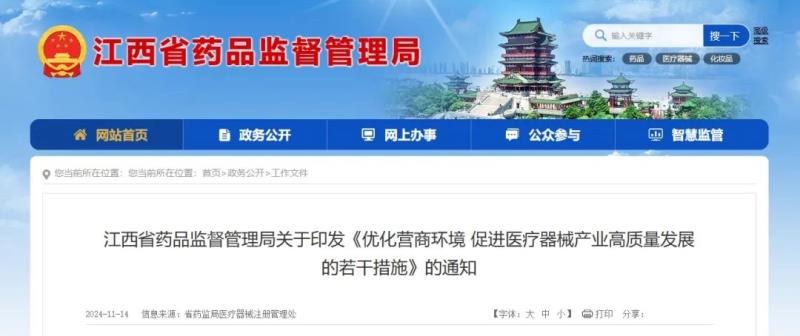 11月14日,江西省藥監(jiān)局發(fā)布《優(yōu)化營商環(huán)境 促進(jìn)醫(yī)療器械產(chǎn)業(yè)高質(zhì)量發(fā)展的若干措施》(以下簡稱《若干措施》),并宣布《江西省藥品監(jiān)督管理局關(guān)于印發(fā)〈優(yōu)化營商環(huán)境 促進(jìn)醫(yī)療器械產(chǎn)業(yè)高質(zhì)量發(fā)展“十三條”惠企政策〉的通知》(贛藥監(jiān)規(guī)〔2022〕7號)和《江西省藥品監(jiān)督管理局關(guān)于做好優(yōu)化營商環(huán)境 促進(jìn)醫(yī)療器械產(chǎn)業(yè)高質(zhì)量發(fā)展“十三條”惠企政策實施工作的通知》(贛藥監(jiān)規(guī)〔2022〕10號)同時廢止。