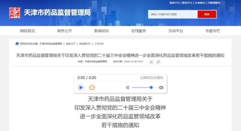 近日,天津市藥監(jiān)局發(fā)布《深入貫徹黨的二十屆三中全會精神進一步全面深化藥品監(jiān)管領(lǐng)域改革若干措施的通知》(以下簡稱《若干措施》),以落實天津市委十二屆六次全會和國家藥監(jiān)局全面深化改革部署要求,全鏈條支持生物醫(yī)藥產(chǎn)業(yè)高質(zhì)量發(fā)展,全生命周期保障藥品高水平安全,全方位加強高效能監(jiān)管和高素質(zhì)專業(yè)化干部隊伍建設(shè)?!度舾纱胧芬愿帽Wo和促進人民健康為目標(biāo),共制定4個方面27條深化藥品監(jiān)管領(lǐng)域改革具體措施。