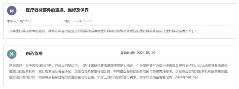 根據(jù)北京市藥監(jiān)局的答復(fù),《醫(yī)療器械經(jīng)營(yíng)質(zhì)量管理規(guī)范》規(guī)定,企業(yè)使用第三方機(jī)構(gòu)提供售后服務(wù)支持的,應(yīng)當(dāng)選擇具備質(zhì)量保障能力的服務(wù)機(jī)構(gòu),簽訂質(zhì)量保證書面協(xié)議,約定雙方質(zhì)量責(zé)任和義務(wù),明確售后服務(wù)的服務(wù)范圍與質(zhì)量管理要求。企業(yè)應(yīng)當(dāng)定期對(duì)服務(wù)機(jī)構(gòu)的質(zhì)量保障能力進(jìn)行考核評(píng)估,確保售后服務(wù)過(guò)程的質(zhì)量安全與可追溯。未對(duì)三方機(jī)構(gòu)資質(zhì)進(jìn)行要求。
