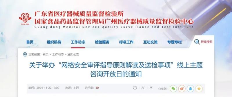 近日,廣東省醫(yī)療器械質(zhì)量監(jiān)督檢驗(yàn)所官網(wǎng)發(fā)布通知,定于11月27日(周三)舉辦“網(wǎng)絡(luò)安全審評(píng)指導(dǎo)原則解讀及送檢事項(xiàng)”線上主題咨詢開放日活動(dòng),具體時(shí)間及參會(huì)方式如下:
