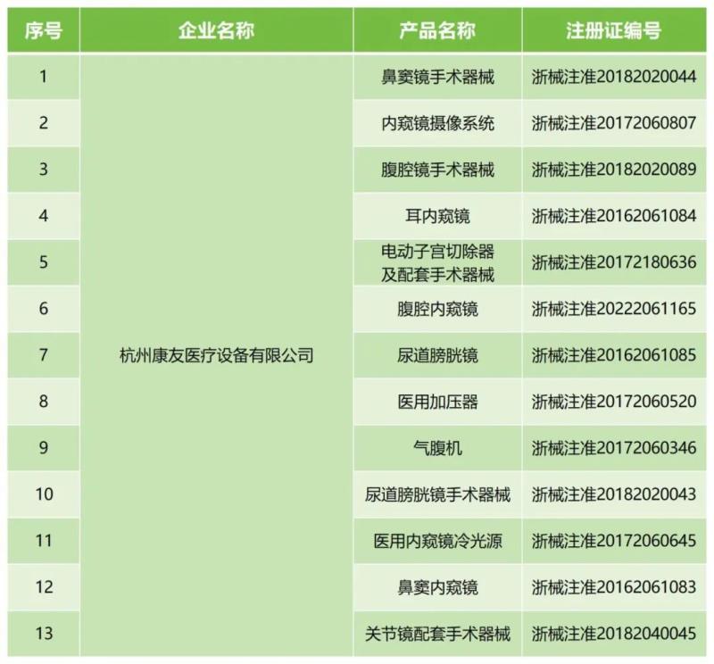 11月25日,浙江省藥監(jiān)局連續(xù)發(fā)布多條關于注銷醫(yī)療器械注冊證書的通告,我們通過查看通告具體內容發(fā)現(xiàn),本次注銷的注冊證均為同一家企業(yè)(杭州康友醫(yī)療設備有限公司)持有,多為內窺鏡系列產品,具體清單如下: