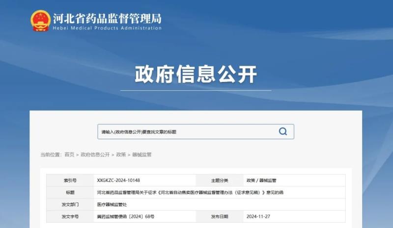 近日,河北省藥監(jiān)局發(fā)布《河北省自動(dòng)售賣醫(yī)療器械監(jiān)督管理辦法(征求意見(jiàn)稿)》(以下簡(jiǎn)稱《辦法》),并向社會(huì)公開(kāi)征求意見(jiàn)。
