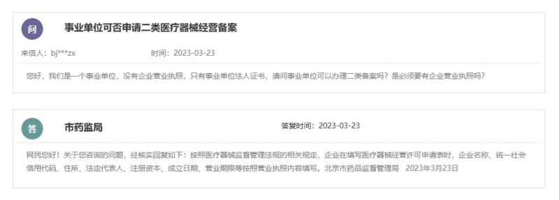 根據北京市藥監(jiān)局的答復,按照醫(yī)療器械監(jiān)督管理法規(guī)的相關規(guī)定,企業(yè)在填寫醫(yī)療器械經營備案/許可申請表時,企業(yè)名稱、統(tǒng)一社會信用代碼、住所、法定代表人、注冊資本、成立日期、營業(yè)期限等按照營業(yè)執(zhí)照內容填寫。