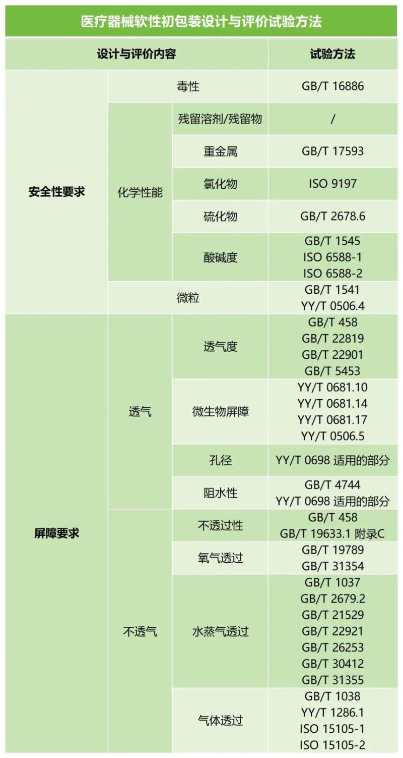 醫(yī)療器械軟性初包裝及其材料的設(shè)計與評價宜考慮安全性要求、屏障要求、耐久性要求、完整性和密封要求、可視性和外觀要求、加工要求、印刷要求以及包裝性能等方面的內(nèi)容,必要時還可能需要進行其他方面的評價。