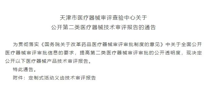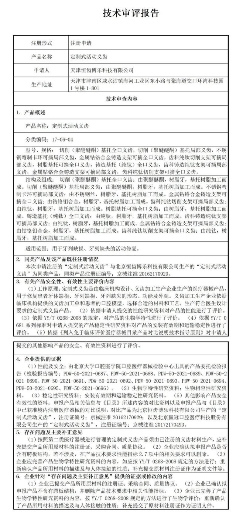 近日,天津市醫(yī)療器械審評查驗中心在其公眾號“天津器審”公開了天津恒齒博樂科技有限公司定制式活動義齒的技術(shù)審評報告,其中提到該產(chǎn)品存在問題及主要補正意見如下: