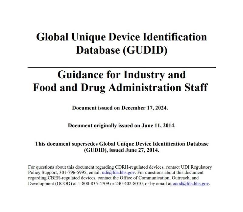 FDA更新全球UDI數(shù)據(jù)庫(GUDID)指南文件