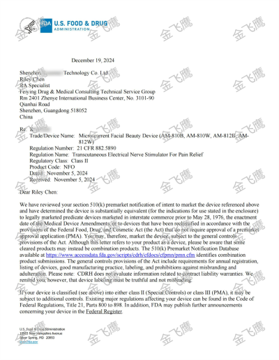 成功獲批微電流美容儀510(k)