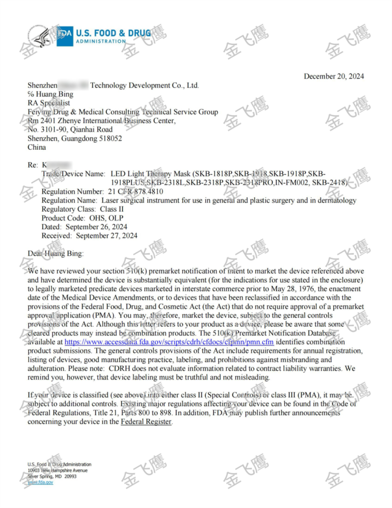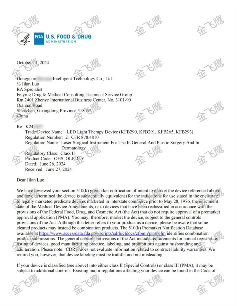 捷報頻傳丨金飛鷹成功輔導企業(yè)獲批紅藍光面罩510(k)