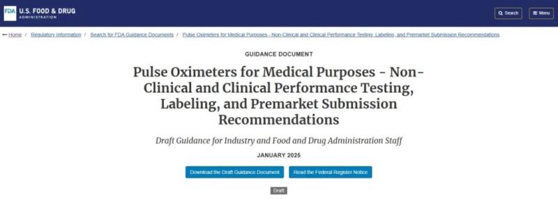 FDA發(fā)布新版脈搏血氧儀指南草案