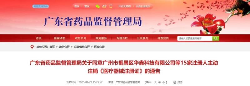 日前,廣東藥監(jiān)局發(fā)布通告稱,廣州市番禺區(qū)華鑫科技有限公司、廣東和信健康科技有限公司等15家注冊人向廣東省藥品監(jiān)督管理局主動(dòng)提出注銷產(chǎn)品注冊證的申請。根據(jù)《醫(yī)療器械監(jiān)督管理?xiàng)l例》的規(guī)定,現(xiàn)對該15家注冊人持有的23張《醫(yī)療器械注冊證》依法予以注銷,主要包括醫(yī)用口罩、超聲潔牙機(jī)、電子聽診器、助聽器等產(chǎn)品,具體明細(xì)如下: