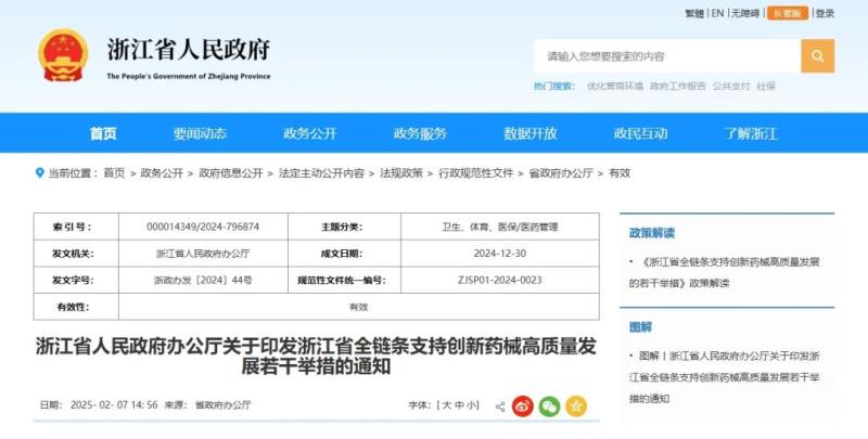 信息來源:浙江省人民政府 排版整理:金飛鷹藥械