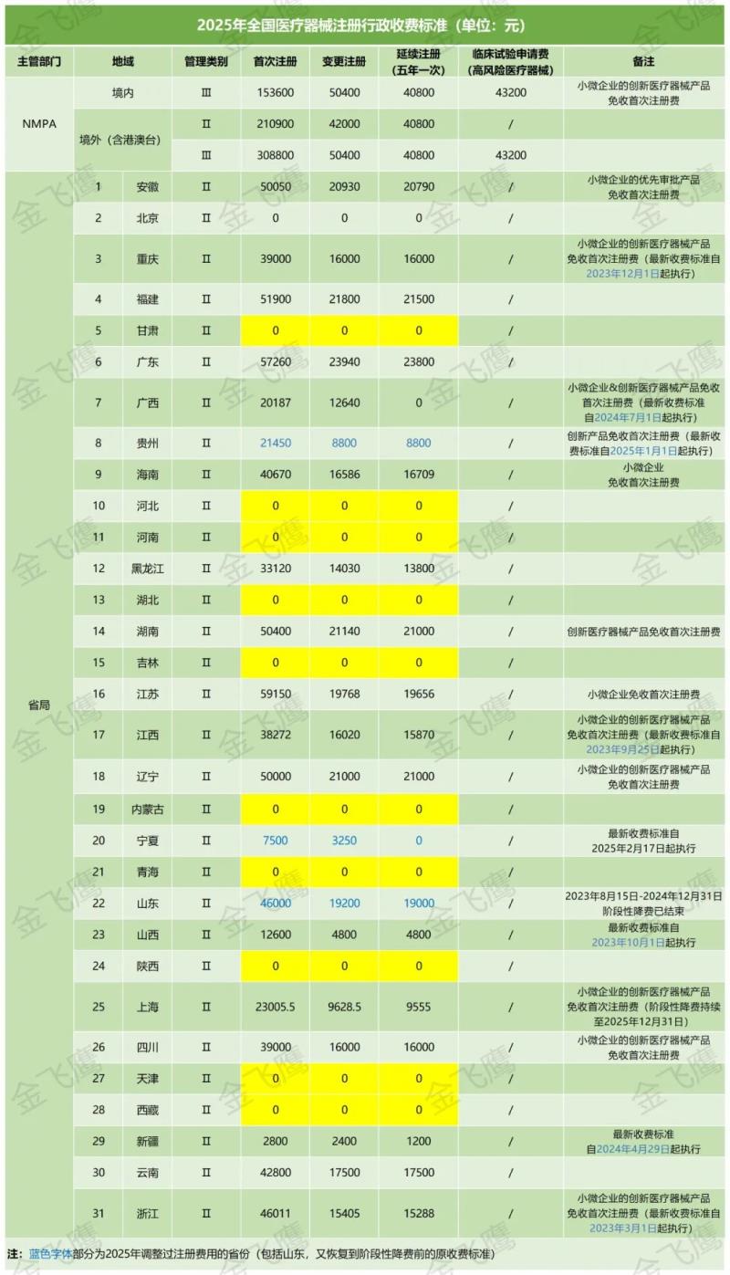 最后依然是按咱們的老規(guī)矩,我們將2025年【全國各省醫(yī)療器械注冊行政收費(fèi)標(biāo)準(zhǔn)】進(jìn)行實(shí)時更新,具體見下圖,大家記得收藏備用哦!