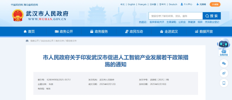 近日,武漢市人民政府發(fā)布《武漢市促進人工智能產(chǎn)業(yè)發(fā)展若干政策措施》(以下簡稱《措施》),以搶抓人工智能發(fā)展機遇,加快建設(shè)武漢國家人工智能創(chuàng)新應(yīng)用先導區(qū),打造國內(nèi)一流的人工智能創(chuàng)新集聚區(qū)和產(chǎn)業(yè)高地。