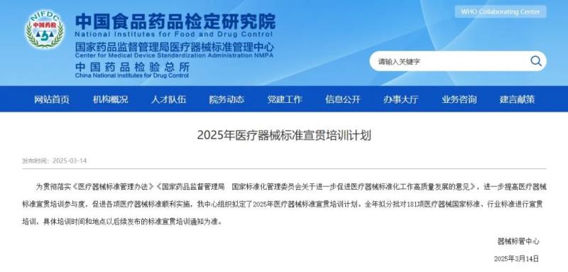 近日,國(guó)家藥監(jiān)局醫(yī)療器械標(biāo)準(zhǔn)管理中心組織擬定并對(duì)外公開了2025年醫(yī)療器械標(biāo)準(zhǔn)宣貫培訓(xùn)計(jì)劃。根據(jù)該通知內(nèi)容,全年器械標(biāo)管中心擬分批對(duì)181項(xiàng)醫(yī)療器械國(guó)家標(biāo)準(zhǔn)、行業(yè)標(biāo)準(zhǔn)進(jìn)行宣貫培訓(xùn),大致安排如下(具體培訓(xùn)時(shí)間和地點(diǎn)后續(xù)會(huì)發(fā)布標(biāo)準(zhǔn)宣貫培訓(xùn)通知):