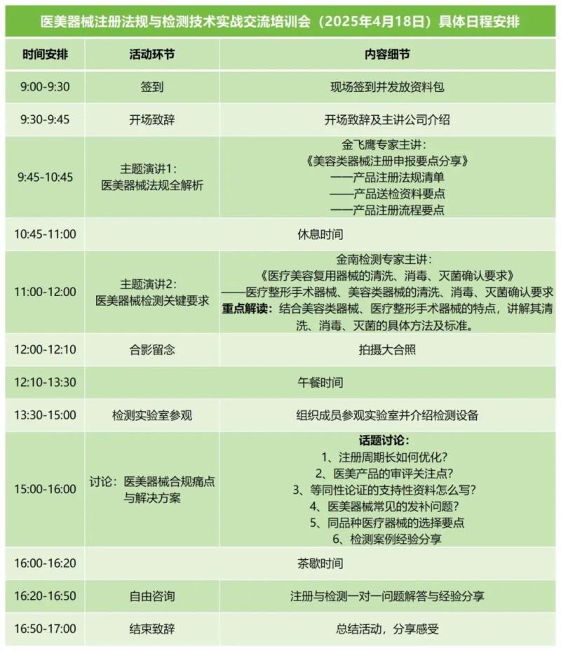 為幫助企業(yè)提升合規(guī)能力,保障產(chǎn)品質(zhì)量,促進(jìn)醫(yī)療美容行業(yè)的健康發(fā)展,金飛鷹聯(lián)合金南檢測(cè)共同策劃了“美容類(lèi)器械注冊(cè)申報(bào)與重用器械處理規(guī)范”培訓(xùn)活動(dòng),深入解析注冊(cè)申報(bào)要點(diǎn)和重復(fù)使用器械處理要求,誠(chéng)邀各美容類(lèi)醫(yī)療器械企業(yè)報(bào)名參加!