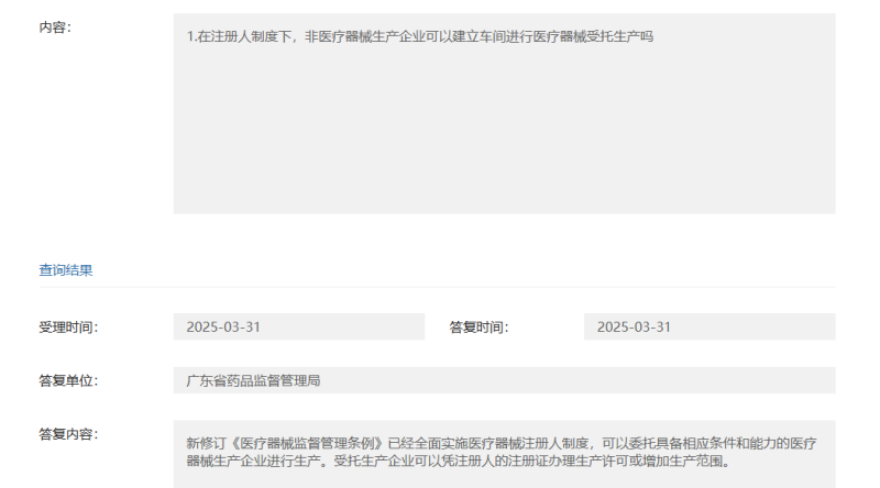 根據(jù)廣東省藥監(jiān)局的答復(fù),新修訂《醫(yī)療器械監(jiān)督管理?xiàng)l例》已經(jīng)全面實(shí)施醫(yī)療器械注冊(cè)人制度,可以委托具備相應(yīng)條件和能力的醫(yī)療器械生產(chǎn)企業(yè)進(jìn)行生產(chǎn)。受托生產(chǎn)企業(yè)可以憑注冊(cè)人的注冊(cè)證辦理生產(chǎn)許可或增加生產(chǎn)范圍。