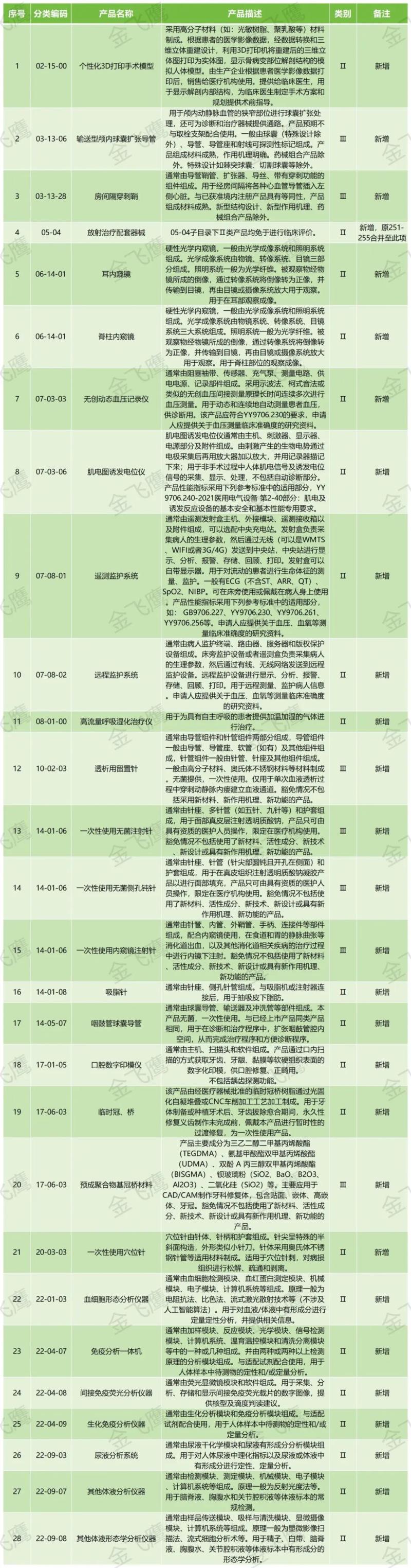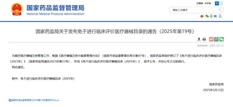 5月13日,國家藥監(jiān)局官網(wǎng)發(fā)布《免于進(jìn)行臨床評價醫(yī)療器械目錄(2025年)》(以下簡稱《目錄》),本次《目錄》中共包含1047類(2023年為1025類)產(chǎn)品,通過查看附件我們可以發(fā)現(xiàn),本次新增的免臨床產(chǎn)品包括個性化3D打印手術(shù)模型、無創(chuàng)動態(tài)血壓記錄儀、遠(yuǎn)程監(jiān)護(hù)系統(tǒng)、一次性使用無菌注射針(用于面部真皮層注射透明質(zhì)酸鈉)等。由于《目錄》全文字?jǐn)?shù)較多,不便在文章中全部展示,我們僅將本次新增的免臨床評價產(chǎn)品匯總?cè)缦?,以供相關(guān)企業(yè)參考: