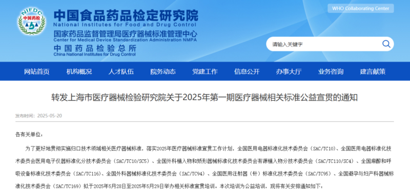 5月20日,中檢院轉(zhuǎn)發(fā)了上海市醫(yī)療器械檢驗(yàn)研究院關(guān)于2025年第一期醫(yī)療器械相關(guān)標(biāo)準(zhǔn)公益宣貫,其中提到,全國(guó)醫(yī)用電器標(biāo)準(zhǔn)化技術(shù)委員會(huì)(SAC/TC10)、全國(guó)醫(yī)用電器標(biāo)準(zhǔn)化技術(shù)委員會(huì)醫(yī)用電子儀器標(biāo)準(zhǔn)化分技術(shù)委員會(huì)(SAC/TC10/SC5)、全國(guó)外科植入物和矯形器械標(biāo)準(zhǔn)化技術(shù)委員會(huì)有源植入物分技術(shù)委員會(huì)(SAC/TC110/SC4)、全國(guó)麻醉和呼吸設(shè)備標(biāo)準(zhǔn)化技術(shù)委員會(huì)(SAC/TC116)、全國(guó)外科器械標(biāo)準(zhǔn)化技術(shù)委員會(huì)(SAC/TC94)、全國(guó)醫(yī)用注射器(針)標(biāo)準(zhǔn)化技術(shù)委員會(huì)(SAC/TC95)、全國(guó)避孕與婦產(chǎn)科器械標(biāo)準(zhǔn)化技術(shù)委員會(huì)(SAC/TC169)擬于2025年5月28日至2025年5月29日舉辦相關(guān)標(biāo)準(zhǔn)宣貫培訓(xùn)。有關(guān)事項(xiàng)具體如下: