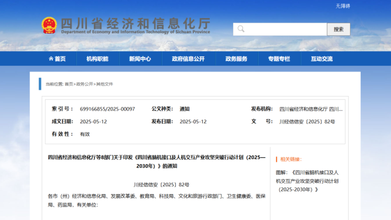 (一)打造醫(yī)療健康核心場景。面向健康中國戰(zhàn)略,支持華西醫(yī)院、四川省人民醫(yī)院等綜合性醫(yī)院,常態(tài)化開展植入式腦機接口手術(shù)。鼓勵各類醫(yī)療、康養(yǎng)機構(gòu),開展神經(jīng)及精神類疾病診療、藥物及數(shù)字成癮疾病診療、智能康復(fù)、健康監(jiān)測等領(lǐng)域腦機接口及人機交互的研究和應(yīng)用。
