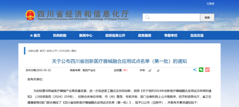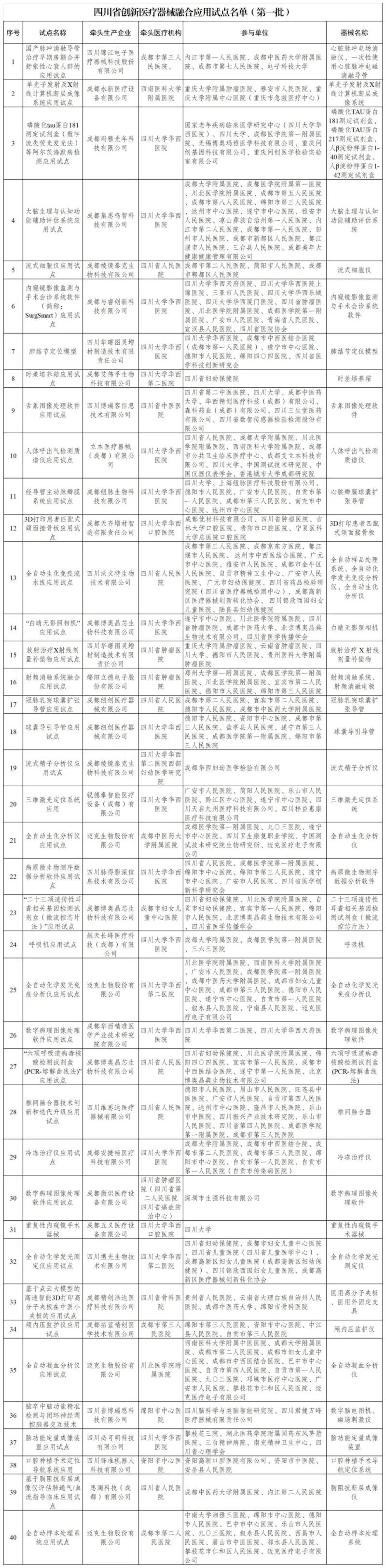 四川發(fā)布首批創(chuàng)新醫(yī)療器械融合應用試點名單,涉及40款產(chǎn)品