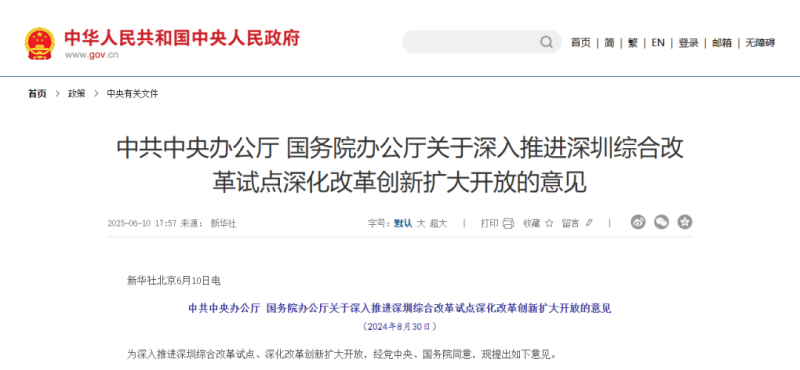 近日,國務(wù)院辦公廳發(fā)布《關(guān)于深入推進(jìn)深圳綜合改革試點深化改革創(chuàng)新擴(kuò)大開放的意見》(以下簡稱《意見》),以更好發(fā)揮深圳在粵港澳大灣區(qū)建設(shè)中的重要引擎作用和在全國一盤棋中的輻射帶動作用,為全面建設(shè)社會主義現(xiàn)代化國家作出貢獻(xiàn)、提供范例。
