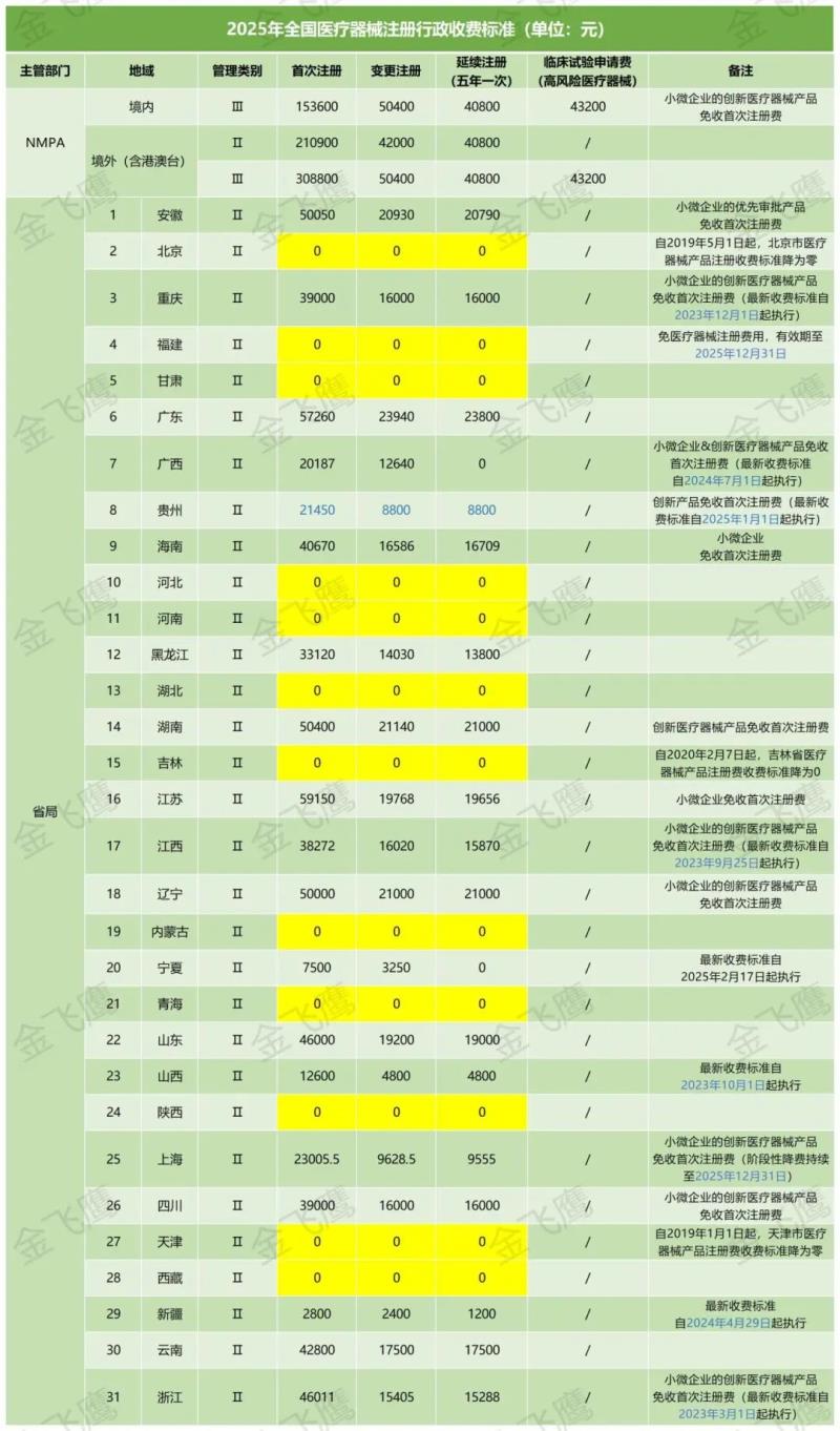 最后依然附上2025最新版【全國(guó)各?。ㄊ校┽t(yī)療器械注冊(cè)行政收費(fèi)標(biāo)準(zhǔn)】(根據(jù)各省政務(wù)服務(wù)網(wǎng)辦事指南及各藥監(jiān)局最新公開的收費(fèi)標(biāo)準(zhǔn)綜合整理,若有疏漏,歡迎各地朋友指正),具體見(jiàn)下圖,大家記得收藏備用哦!
