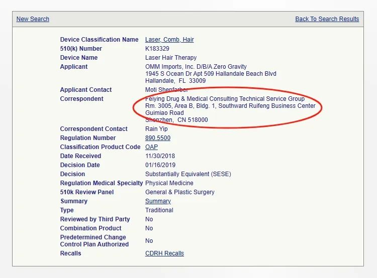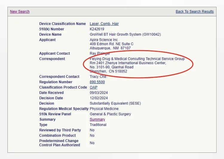 2024年9月,我們成功輔導(dǎo)美國企業(yè)Apira Science Inc獲批激光生發(fā)梳的510(k),在此之前,還有多家國內(nèi)企業(yè)獲批案例: