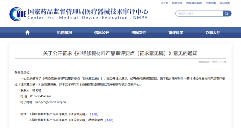 7月9日,國(guó)家藥監(jiān)局器審中心發(fā)布《神經(jīng)修復(fù)材料產(chǎn)品審評(píng)要點(diǎn)(征求意見稿)》(以下簡(jiǎn)稱《審評(píng)要點(diǎn)》),并向社會(huì)公開征求意見。