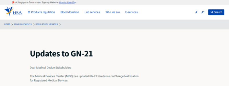 近日,新加坡HSA更新了有關(guān)醫(yī)療器械變更注冊(cè)的指南文件GN-21:Guidance on Change Notification for Registered Medical Devices,并宣布自2025年7月14日起正式生效。