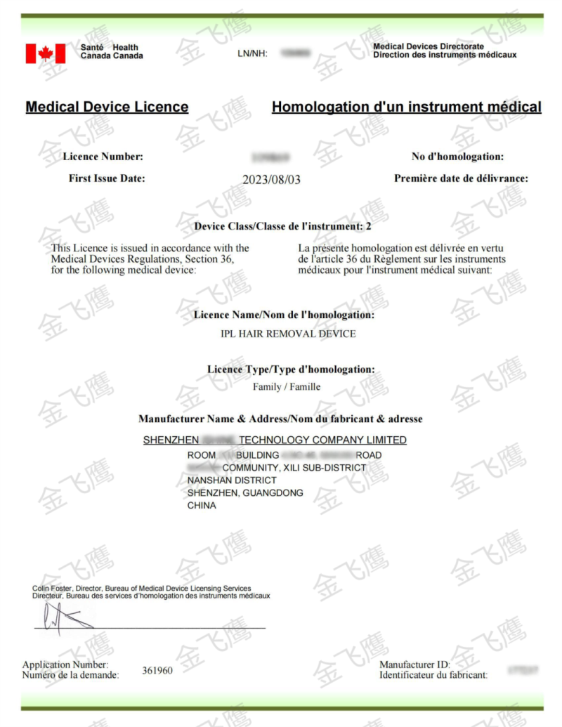 2023年,我們輔導(dǎo)的深圳一家企業(yè)成功取得脫毛儀的加拿大MDL證書,當(dāng)時是按第二類醫(yī)療器械產(chǎn)品申請的,但值得注意的是,如今在加拿大,脫毛儀已被納入第三類醫(yī)療器械管理了。