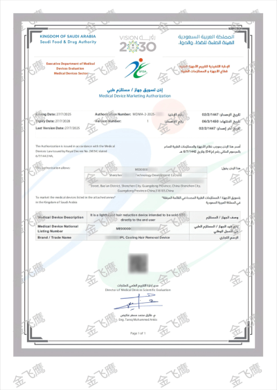 素有“中東土豪”之稱的沙特阿拉伯,雖然經(jīng)濟(jì)規(guī)模和人均收入世界排名靠前,但卻是醫(yī)療器械產(chǎn)品極度依賴進(jìn)口的一個國家。因此,近年來,沙特阿拉伯也是國內(nèi)醫(yī)械企業(yè)“出海戰(zhàn)略的一個重要目標(biāo)市場在脫毛儀沙特注冊領(lǐng)域,我們給大家展示7月26及27日新鮮出爐的兩張證,更多沙特注冊案例,可點擊右側(cè)文章?美容面罩沙特上市許可。