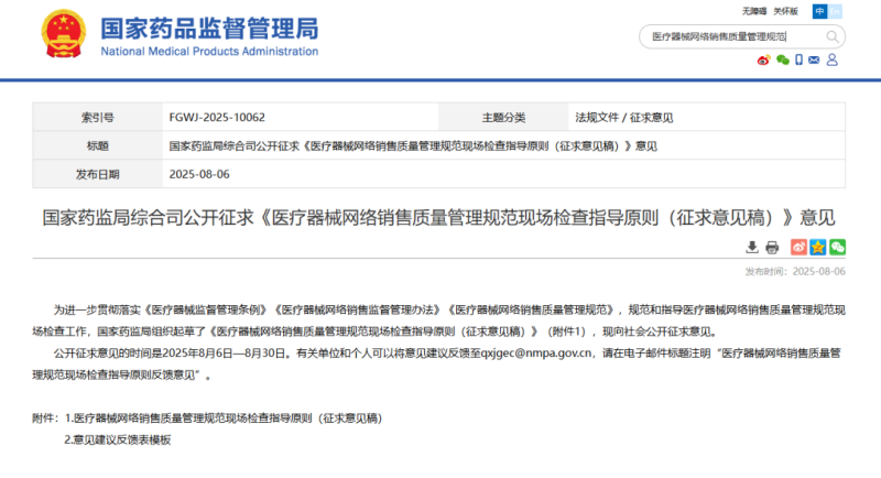 今年4月,《醫(yī)療器械網(wǎng)絡(luò)銷售質(zhì)量管理規(guī)范》正式出臺,緊隨其后,8月6日,國家藥監(jiān)局《醫(yī)療器械網(wǎng)絡(luò)銷售質(zhì)量管理規(guī)范現(xiàn)場檢查指導(dǎo)原則(征求意見稿)》(以下簡稱《指導(dǎo)原則》),并向社會公開征求意見。